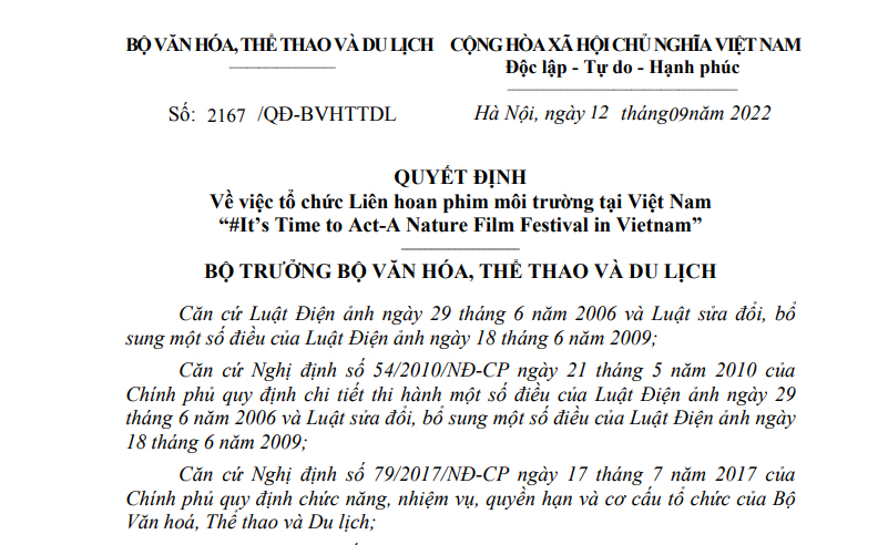 Ngày 01/8/2022, Phó Thủ tướng Thường trực Phạm Bình Minh đã ký Quyết định số 917/QĐ-TTg về việc ban hành Danh mục và phân công cơ quan chủ trì soạn thảo văn bản quy định chi tiết thi hành các luật, nghị quyết được Quốc hội khóa XV thông qua tại Kỳ họp 3. Trong đó, Phó Thủ tướng giao Bộ Văn hóa, Thể thao và Du lịch phối hợp với Bộ Tư pháp, Văn phòng Chính phủ và các Bộ, cơ quan ngang bộ, cơ quan có liên quan xây dựng 5 văn bản quy định chi tiết Luật Điện ảnh.