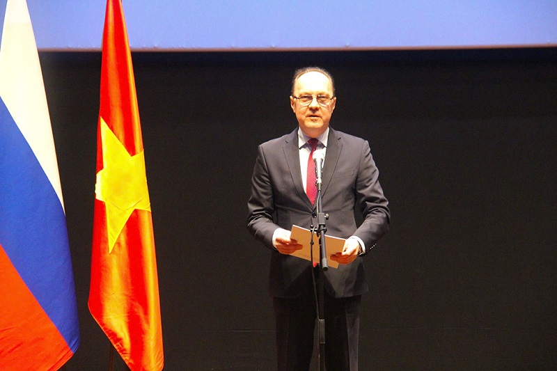 Đại sứ Đặc mệnh toàn quyền Liên bang Nga tại Việt Nam Gennady Stepanovich Bezdetko phát biểu chào mừng Tuần phim (ảnh: Báo Văn hóa)