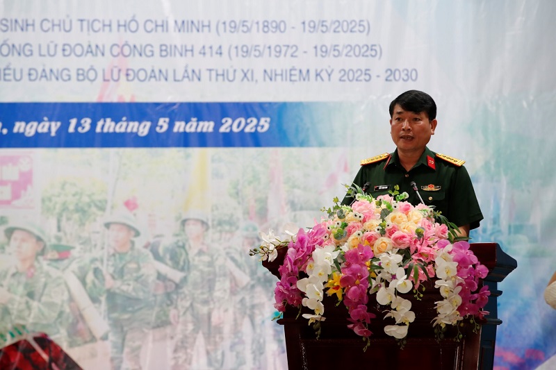 Đại tá Nguyễn Thanh Bình, Chính ủy Lữ đoàn công binh 414, Quân khu IV phát biểu chào mừng