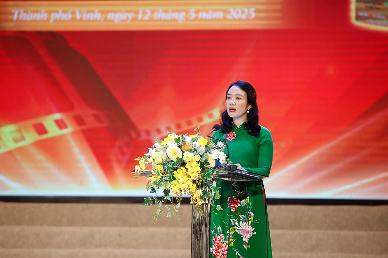 Bà Trần Thị Mỹ Hạnh, Giám đốc Sở Văn hóa, Thể thao và Du lịch tỉnh Nghệ An phát biểu chào mừng