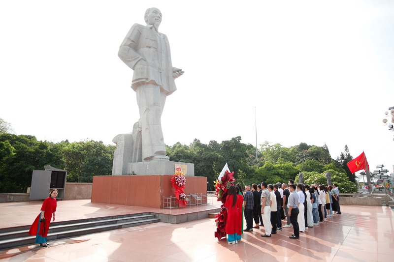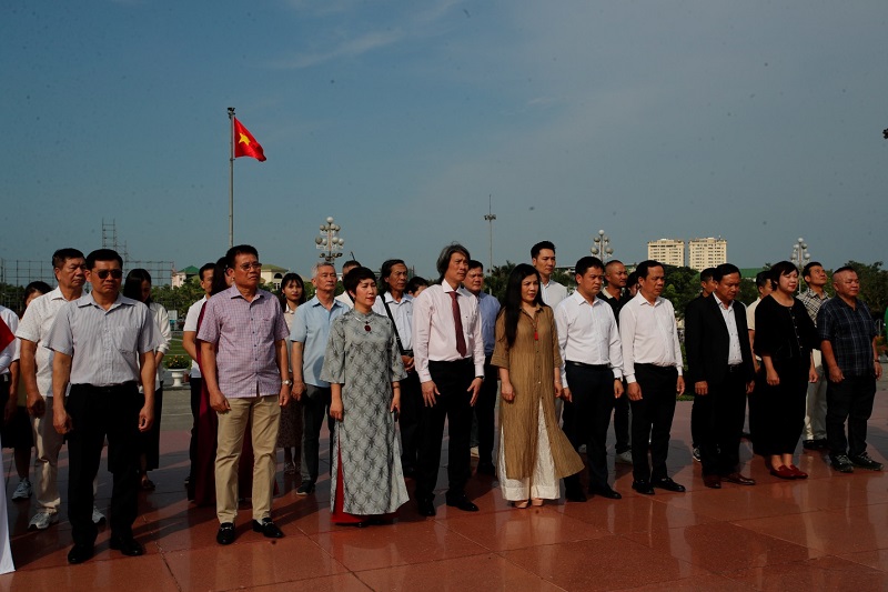 Chiều cùng ngày, Ban tổ chức Lễ hội Làng Sen năm 2025 và đoàn cán bộ, nghệ sĩ điện ảnh thực hiện Tuần phim Kỷ niệm 135 năm Chủ tịch Hồ Chí Minh đã tổ chức lễ dâng hoa tại Quảng trường Hồ Chí Minh.