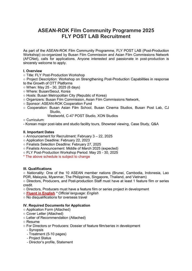 - Đơn vị phối hợp tổ chức: Hợp tác: Busan Film&Audiovisual Industry Center, Busan Asian Film School, Busan Cinema Studios, Busan Post Lab, C-47 POST Studio, XON Studios, CJ ENM Studio Center, Westworld